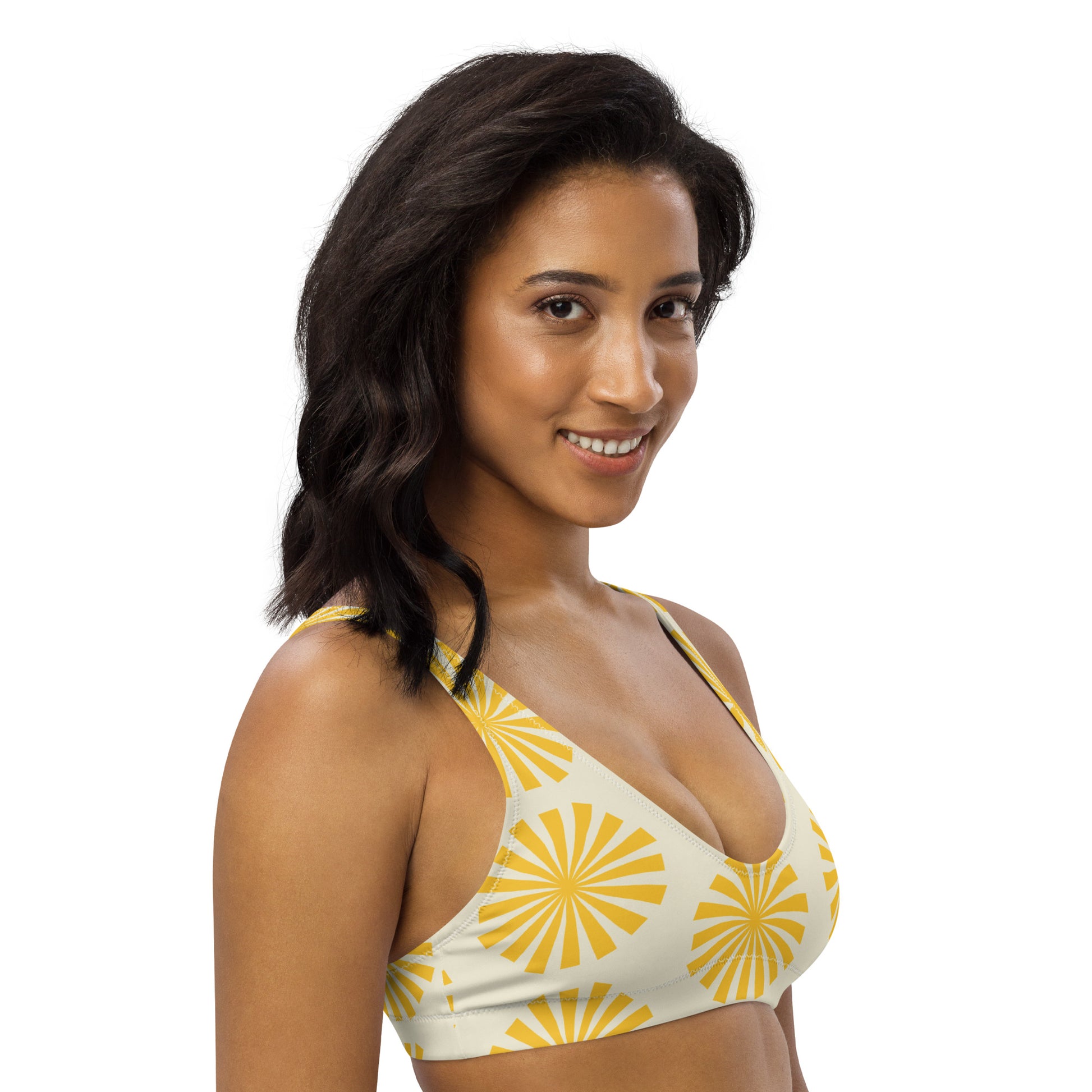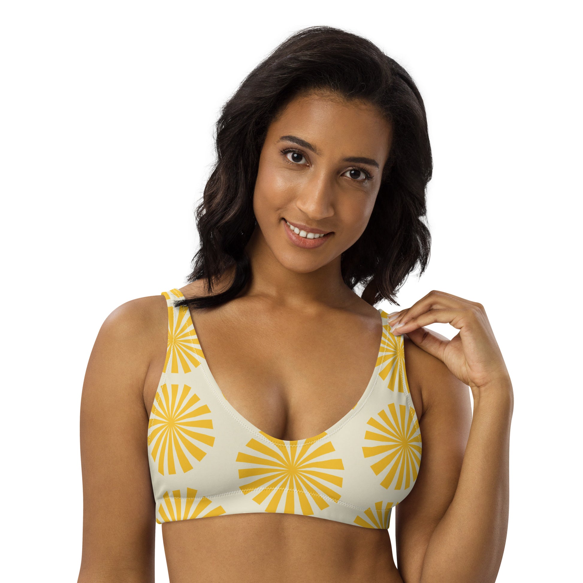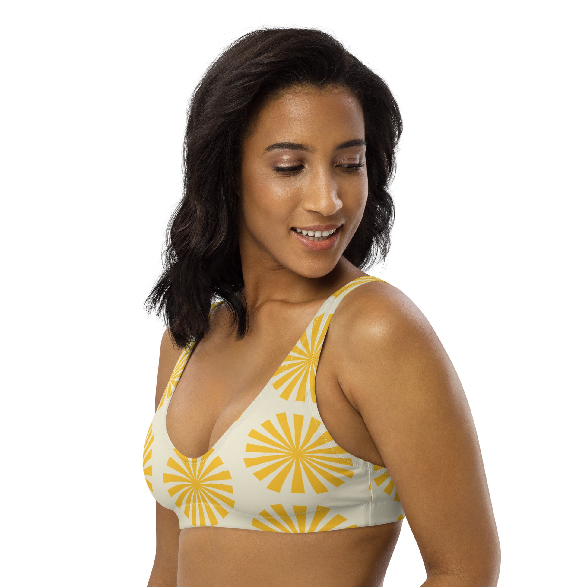 Get this Recycled padded bikini top for your summer adventures! It’s comfortable and includes pads you can remove. To make this top even more versatile, mix and match it with different bikini bottoms for a trendy look.